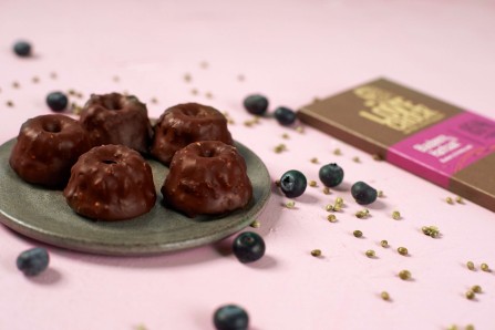 Breng de gesmolten chocolade over in een klein potje, pak de minicakejes op met een lange houten prikker en koel ze voorzichtig af. Dompel ze voorzichtig in het chocoladebad. Laat afkoelen op een rooster.