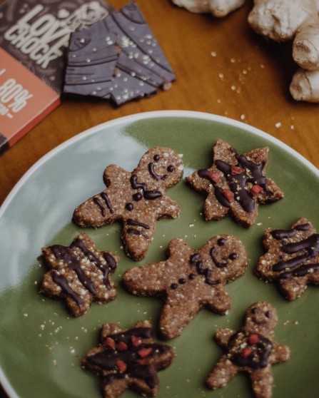 Versier de koekjes met de chocolade, goji bessen en eventueel edible gold.