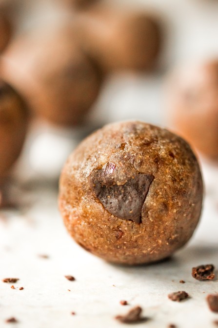 Doe eerst de dadels in de keukenmachine en maal tot je een stevige, homogene massa krijgt.